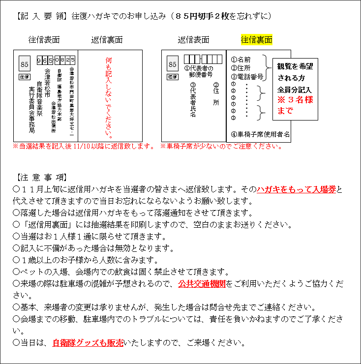 ※①~③は、観覧を希望者される方全員分記入(はがき1枚につき観覧希望者3名様までお申込みいただけます。)